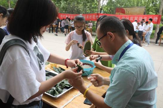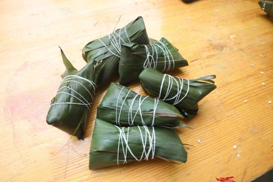 圆锥形的、三角形的、四角形的、筒状的,桌上的粽子伴着同学们的欢笑声被塑造成型,尽管形态各异,与专业水准相差甚远,但同学们对自己的“首秀作品”都格外珍视,纷纷与自己的“作品”合影留念,活动现场处处洋溢着师生们的欢笑声和香甜的粽叶清香。