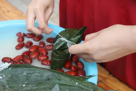 活动开始前,杨处长为大家送上端午祝福,希望师生通过传统佳节,领悟传统文化,共同度过一个美好又充满意义的端午节,随后,主持人宣布活动流程、卫生注意事项等,活动正式开始。后勤工作人员早已准备好红枣、糯米、粽叶、细绳等原材料,只待师生们齐下手,只见师生代表们洗净双手,撸起袖子,按捺不住想要一试身手的心,急切的拿起粽子就要开始。