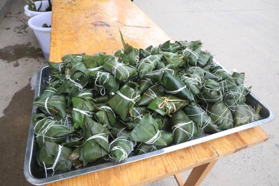 经过一个多小时的努力,一盆盆粽子被送到餐厅后厨,煮好后,由团委工作人员逐一分发到老师和同学们手中,让大家享用自己的劳动成果。