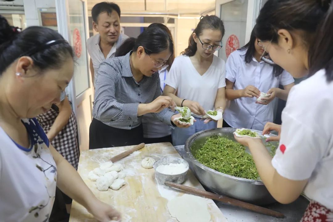 敬老院餐厅里,车院助则带领各位老师为老人们准备午饭。擀面皮,包菜包,在老师们的共同努力下,一大盆包子馅在这些“能工巧匠”们手中变成了一个个白白胖胖的鲜菜包,它们包裹住的不只是老师们的心灵手巧,还包裹着老师们对老人的善和爱。