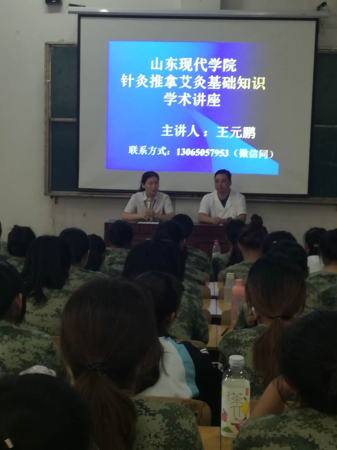 2019年8月30日上午8点30分,由教务处牵头组织的王元鹏教授的《山东现代学院针灸推拿艾灸基础知识学术讲座》在阶梯教室108室顺利召开,讲座由教务处杨秀处长主持,王元鹏教授主讲2019级医学院及护理学院新生代表参与。