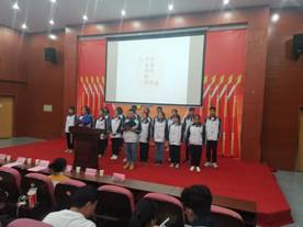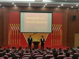 在主持人激昂的对白下朗诵比赛正式拉开帷幕,首先由医学院行政秘书朱德相老师上台致辞,祝福祖国成立70周年,同时提到新时代是奋斗者的时代,新时代属于新青年,新时代需要新青年,朱老师希望同学们要努力奋斗,有爱国之心,茁壮成长成为国家的栋梁之才,对同学们寄予了深厚的期望。