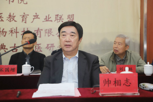 开幕式伊始,我院副院长帅相志教授代表刘春静董事长致辞:作为主办方,刘春静董事长对各位领导和专家的到来表示热烈的欢迎和感谢!我院在弘扬传统中医文化方面做出了不懈努力和探索,将针灸、中医推拿、中医经典、中医歌诀等纳入学生成长成才教育目标任务书中,并开设相应的课程和讲座,使学生了解中医养生保健常识,掌握中医养生保健方法,学以致用,健康养生,为自己、家人和朋友的健康保驾护航。希望通过本次研讨会的举办,各位能够交流碰撞,畅所欲言,加强行业内的学术交流,共同推动中医事业的健康发展。