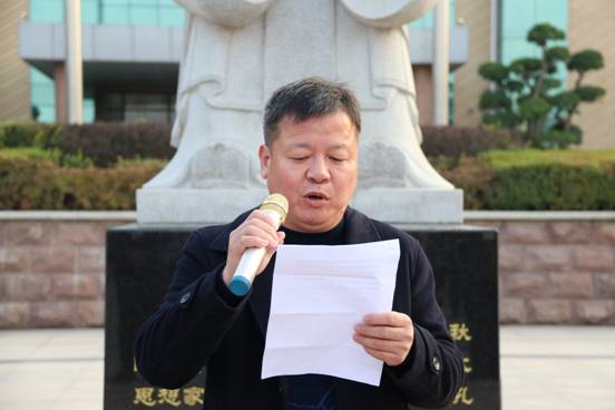 首先,由吴院助致辞,提到中国传统文化内涵丰富、博大精深,是人类文明发展的重要精神财富。陈宝生部长曾指出传统文化进校园是固本工程和铸魂工程,要拓展校园文化,为优秀传统文化创造广饶的沃土、更好的氛围。我院学生处团委及各院系积极秉承“天道酬勤”的校训,谨记董事长在2019年新生开学典礼的讲话精神,“牢记初心,不忘使命”,将传承优秀传统文化贯穿到学生教育管理的各个方面,让广大师生能够潜移默化的进行传统文化的学习,加深传统文化精神力的理解和体会。今天我们聚集在这里,开展山东现代学院弘扬优秀传统文化系列活动之千人诵读活动,展现我校对于学习和弘扬中华民族优秀传统文化的决心和信心。在今后的日子里,各学院都将举办精彩纷呈、内容丰富、形式多样、积极有趣的传统文化系列活动,请大家积极参加。