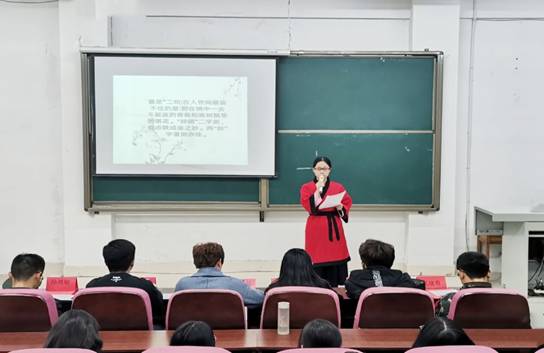 在比赛开始前,文艺部干事为评委和观众们带来开场舞《但愿人长久》,优美的舞姿拉开了比赛的帷幕。随后康惠院长为此次比赛致辞。康惠院长首先对本次比赛的举办予以肯定。然后康院长表示要重拾经典,读好书,不仅对平时的学习有很大的帮助,而且对以后的人生也会产生重要的影响。最后,康院长预祝本次比赛顺利举行。