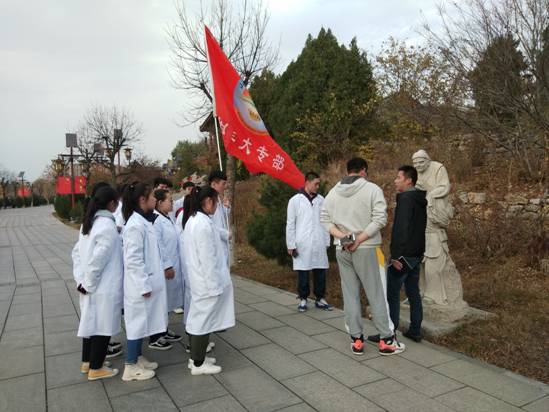 随后,同学们三五成群结伴游览参观,走到行佣供母的石像前,鲍部长重点为大家讲述了这其中的故事,中华二十四孝是指中国历代24位孝子不同形式行孝的故事,行佣供母便是其中的一孝,主人公江革在战乱不断,盗匪四起的年代背母逃难,照顾母亲的衣食起居,为母行孝的事迹感化了我们一代又一代人,让我们懂得知恩感恩。
