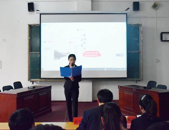 大会伊始,杨冠峰处长为本次活动致辞。杨处长用习总书记曾说过的三句古诗词表达了对本次诗词大会的祝愿,中华民族的昨天,可以说是“雄关漫道真如铁”;中华民族的今天,可以说是“人间正道是沧桑”;中华民族的明天,可以说是“长风破浪会有时”。杨处长希望同学们珍惜自勉,奋发图强,理解“青春须早为,岂能长少年”的真正含义。