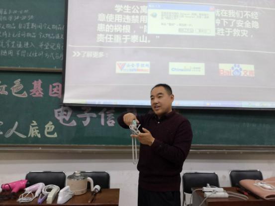 为创建平安和谐校园,培养学生的安全责任感,使学生逐步形成宿舍安全防范意识,电子信息学院于11月21日晚7时在科研503室开展以“维护宿舍安全,拒绝违章隐患”为主题的宿舍违禁物品展示活动。电子信息学院行政秘书李自想老师作为本次活动的主讲人,部分代表班级参与。