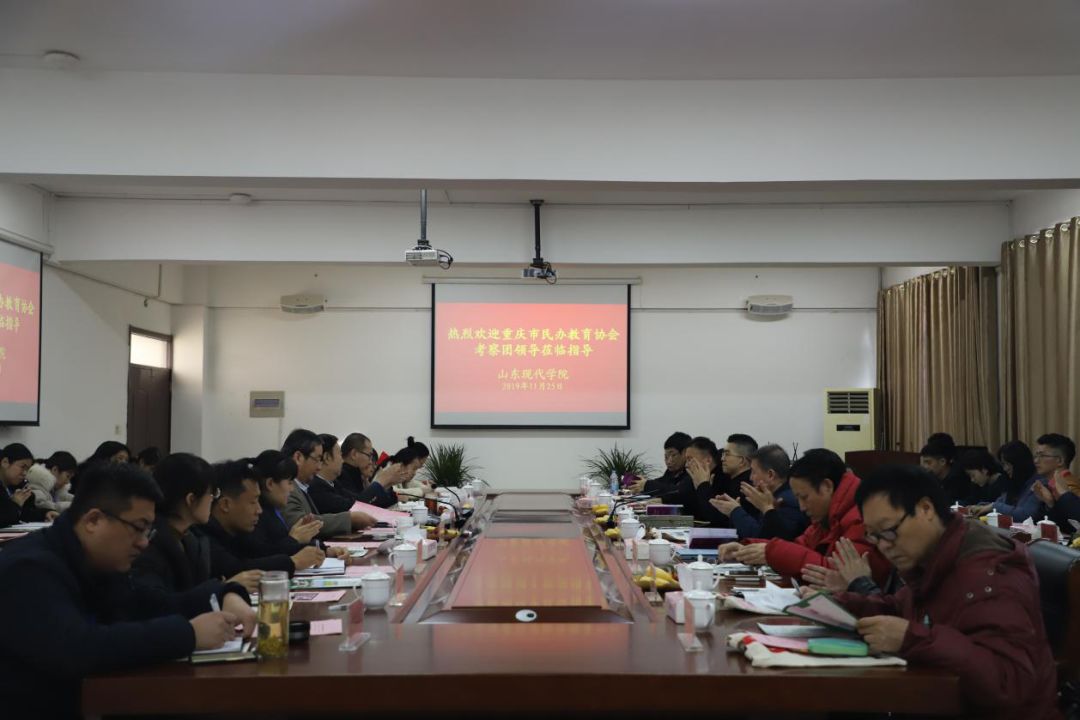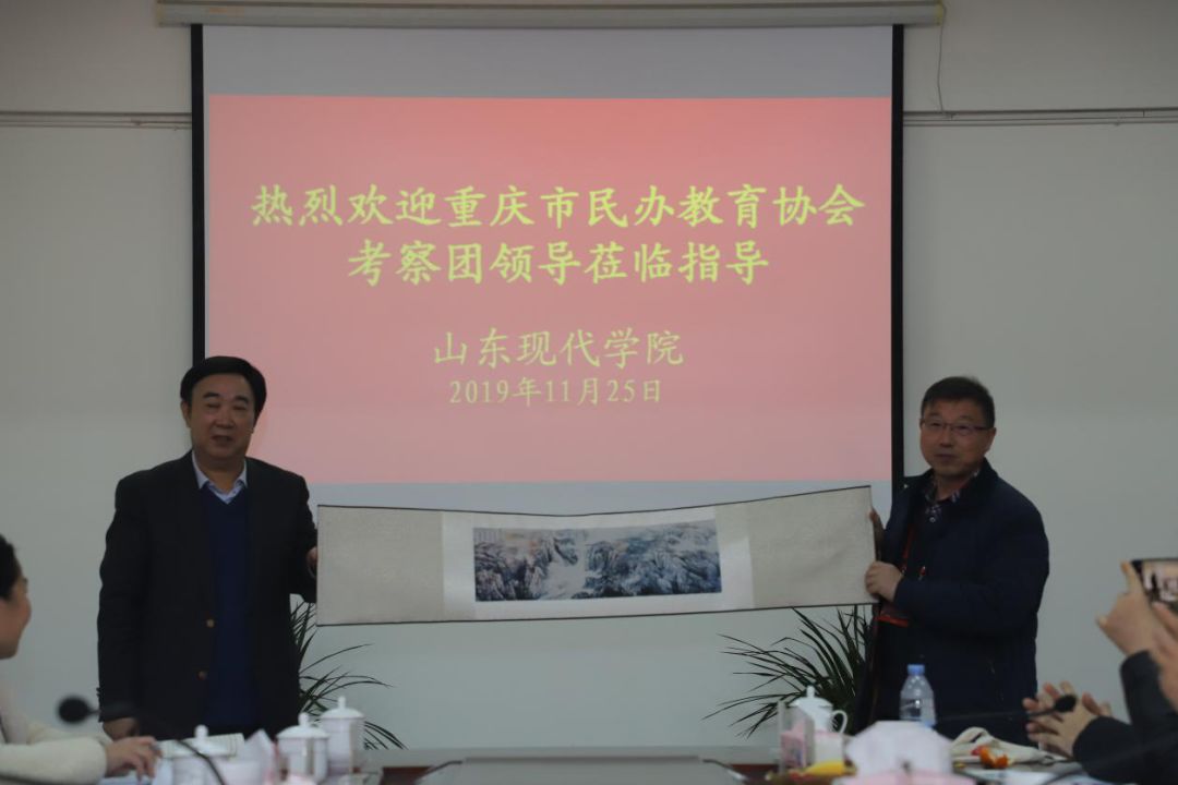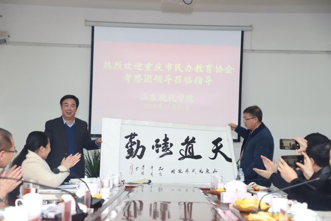 11月25日上午,重庆市民办教育协会副秘书长、 高职专委会秘书长甘永诚率重庆市民办教育协会考察团一行20人来我院考察交流。山东省民办教育协会执行副会长、山东现代学院副院长帅相志,山东现代学院副院长王开贞,学院董事会执行董事、董事长助理李泉慧,院长助理解银苹、董艳华、宋国增,院办主任丛俊萍,招就办主任时敬爱,教务处处长白雪等出席交流会。会议由我院副院长帅相志主持。