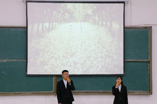 来自电子信息学院的丰天玉和医学院的韩庆同学,朗诵了原创作品《陵魂》,该作品向我们展示了南京大屠杀的罪恶,通过两位同学的倾情演绎,感染了现场评委和观众,他们以9.9分的最高成绩获得了本次比赛的第一名。