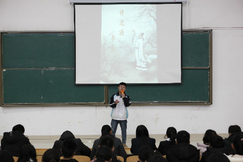 三等奖获得者,人文学院高靓雯和王晓雅两位同学朗诵作品《我的墓碑》,展示了抗战时期革命战士的民族大义与家国情怀;人文学院张宇焘同学的《中华颂》讴歌了华夏文明的壮丽诗篇;汽车学院于志遥同学一首李白的《将进酒》,淋漓尽致的表现了诗仙李白失望与自信、悲愤与抗争的情怀,体现出强烈的豪纵狂放的个性,该同学慷慨激昂、松弛有度的表演博得了大家的认可。