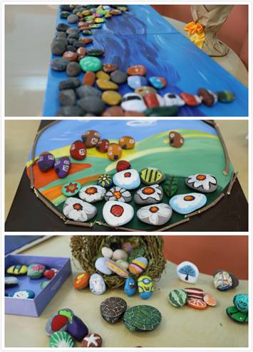 古有点石成金,今有绘石成画。当石头遇上画笔,他们在无限创意中将一颗颗朴实无华的石头变得色彩斑斓,富有生命力。《企鹅之家》、《阖家欢乐》、《向往的生活》等石头画作品栩栩如生,呼之欲出。