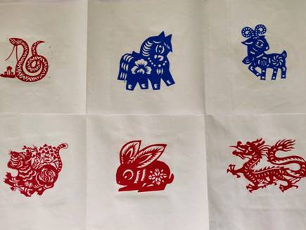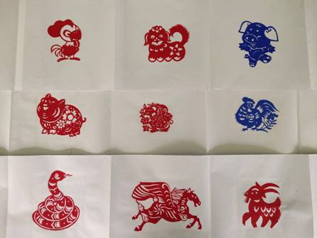 刻纸艺术也是我们的传统文化,一把小刀、一张纸、一双手,刻画出一幅幅活灵活现的作品。《十二生肖》、《福》、《囍》、《扇面》等作品惟妙惟肖,纸细而不破,足以显示出学生们的心灵手巧。