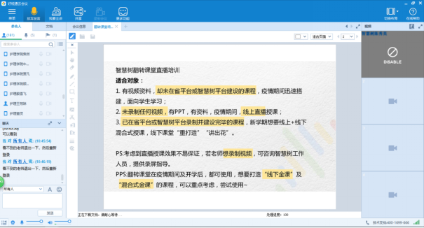 首先,由智慧树陈秀英老师做了题为《面对疫情 老师该如何线上教学》培训,陈老师从建课准备、学习任务部署、在线实时授课、课后在线答疑、作业布置与批阅、学习效果评价等方面,逐一详细讲解各个功能的使用方法和技巧,帮助授课教师掌握线上教学的能力,真正实现停课不停学。