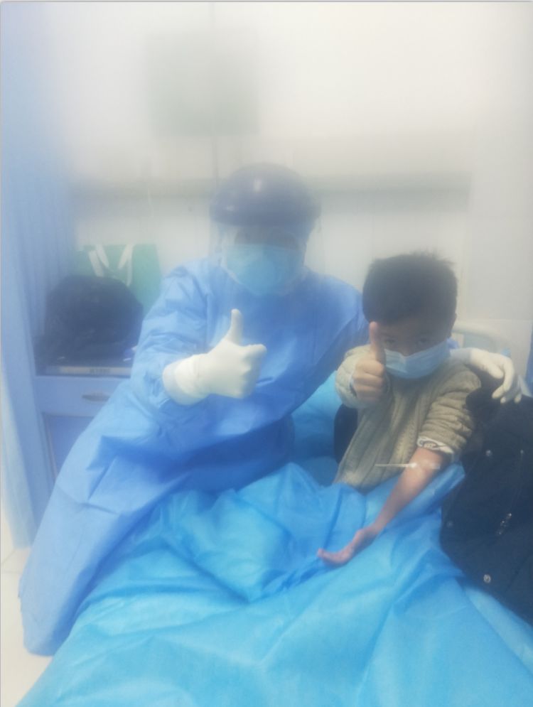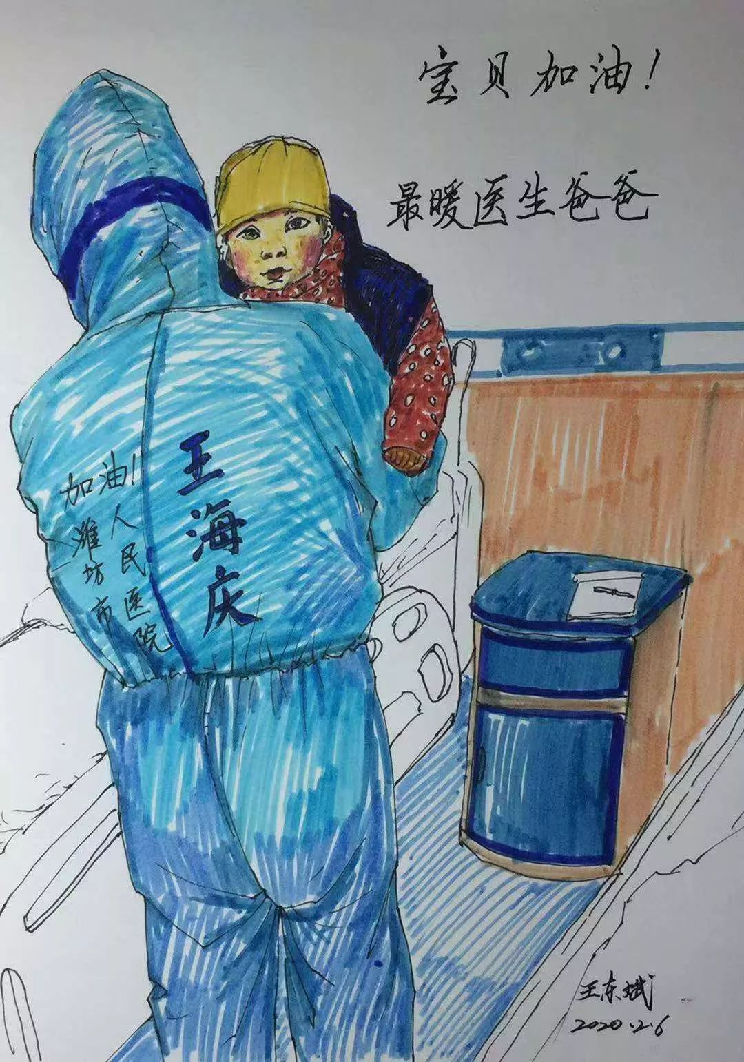 在王海庆接班第一天时就收到9个月婴儿确诊的病例,这是山东队收治的年龄最小的患者。当时孩子父亲拼命打电话联系孩子的母亲,一直联系不上,非常焦急,而孩子的母亲也在本医院治疗,一家三口全部被感染。第二天,王海庆联系了孩子母亲,经过与医院的努力协调,一家三口住到了同一个病房里,共同接受治疗。目前三口病情稳定,再过几天有望出院。