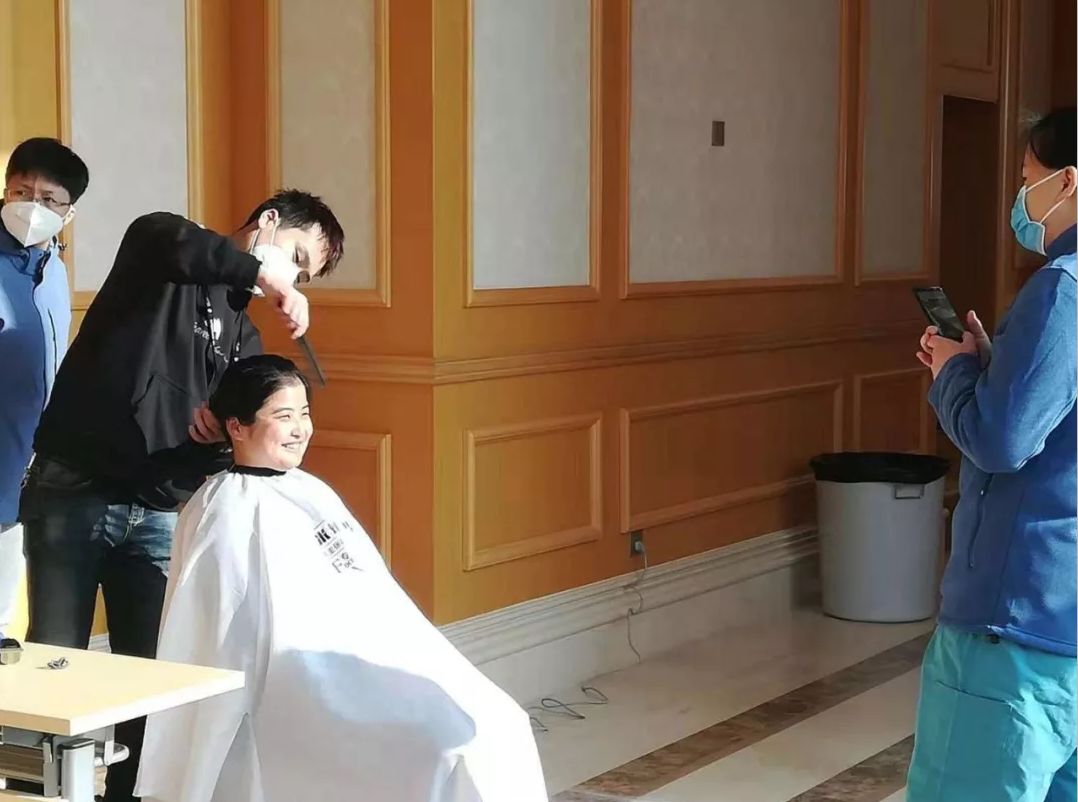 为了做好安全防护措施,尽可能少的接触到患者的飞沫体液等,解孝欣将自己一头漂亮的披肩发剪掉。“肯定会有不舍,但疫情就是命令!”解孝欣说,“特殊时期,防护大于一切”。