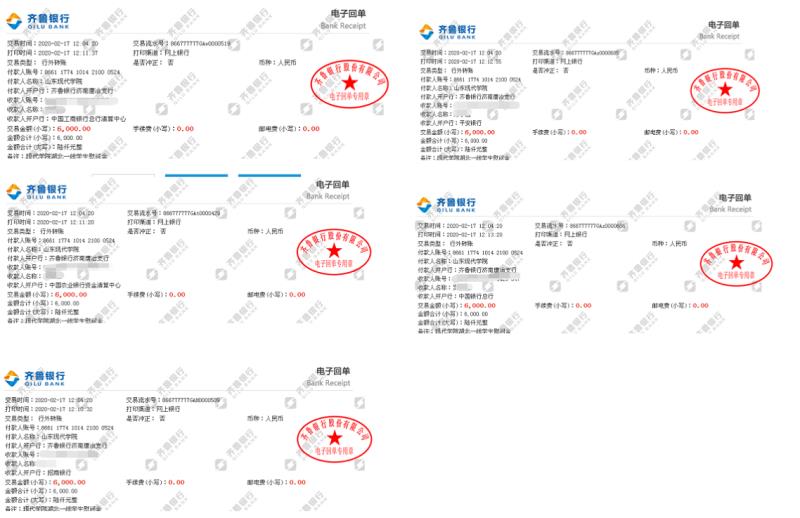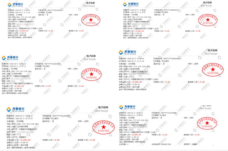 (关怀我院驰援湖北11名毕业生慰问金的打款回执单)
