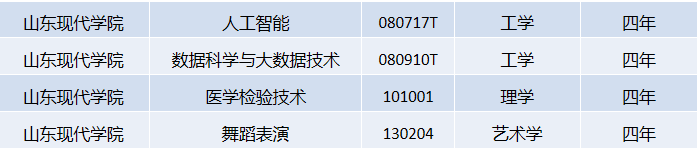 近日,教育部公布了《2019年度普通高等学校本科专业备案和审批结果》,山东现代学院申报的人工智能、数据科学与大数据技术、医学检验技术以及舞蹈表演四个本科专业获教育部批准,学制四年,并从2020年开始招生,至此我院本科专业总数达到26个。