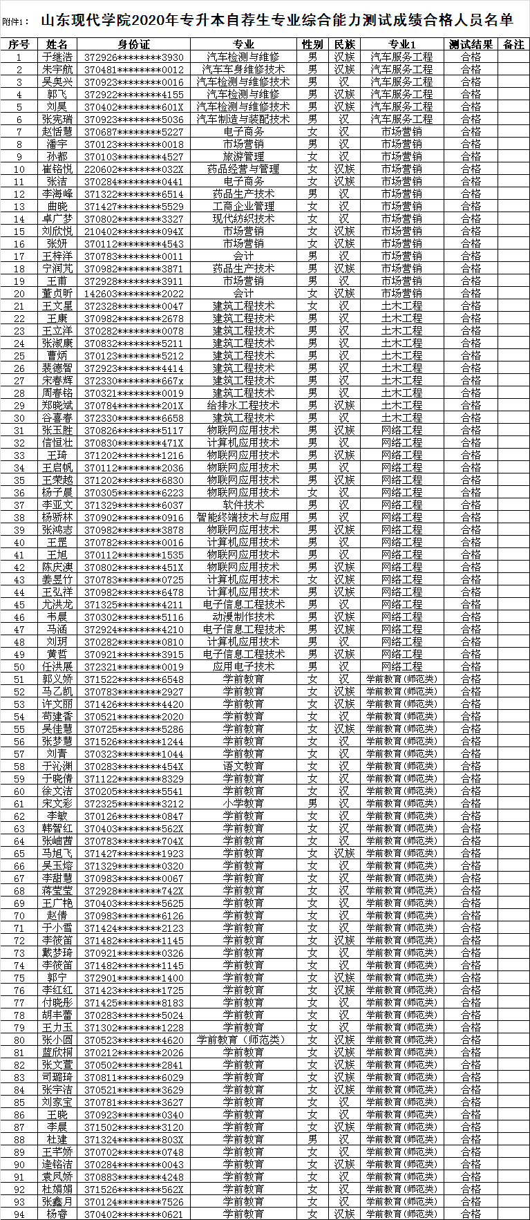山东现代学院2020年专升本自荐生专业综合能力测试考试已于2020年5月22日顺利结束,目前成绩已经汇总完毕,现将测试成绩合格的考试名单进行公示。