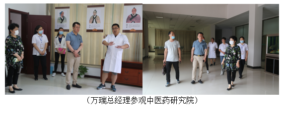 最后,万瑞总经理实地参观了我校中医研究院的中药房、治疗室、熏蒸室和艾灸室,对我校中医药研究院的规划设置给予了较高的评价,同时希望能与我院达成深度合作。