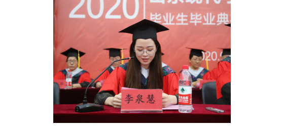 董事会执行董事、院长助理李泉慧宣读董事长、院长刘春静教授致辞。致辞中,刘春静董事长对所有2020届毕业生圆满完成学业表示祝贺,并对精心培育学生成长成才的老师们表示衷心感谢;对不畏艰险、毅然加入抗疫一线的现代学子给予充分肯定。临别之际,刘春静董事长对毕业生提出四点希望:第一,勇于奋斗,在奋进不息中增强底气;第二,勤于立德,在正己守道中行稳致远;第三,勇于担当,在实现大我中成就小我;第四,善于感恩,在仰望星空中脚踏实地。并寄语现代学子,在今后的道路上肩负起时代赋予的责任使命,锐意进取、迎难而上,不负韶华,未来可期。