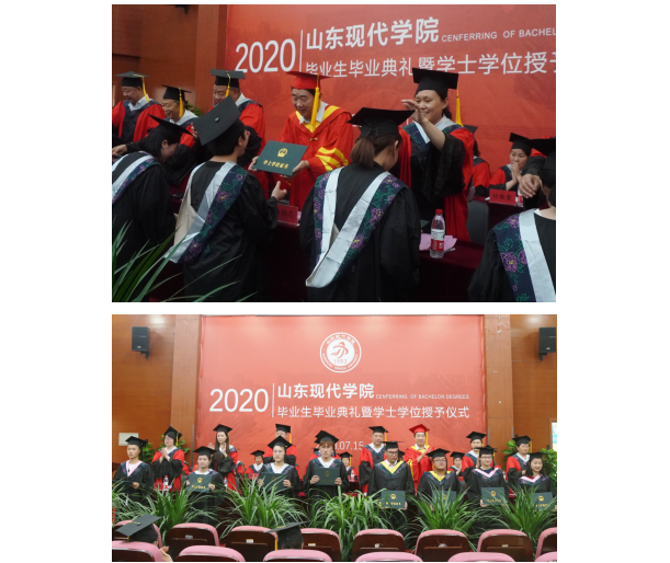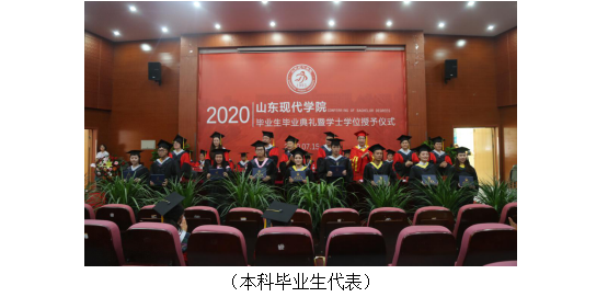 7月15日,山东现代学院2020届毕业生毕业典礼暨学位授予仪式在科研楼101报告厅隆重举行。毕业典礼采取线上线下相结合的方式,为在抗击新冠肺炎疫情特殊形势下圆满毕业的5014名毕业生送上衷心祝贺和美好祝福。今天,他们将告别难忘的校园生活,迈向新的人生征程。