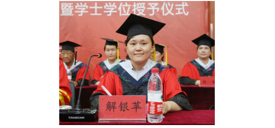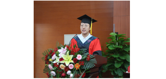 优秀毕业生代表王晓煜发言,她回忆了大学四年的时光,表达了对学校、父母、良师益友的感谢和对母校的深情祝福。表示今后在工作中,“立鸿鹄志,做奋斗者”,牢记“天道酬勤”的校训,为学校增光添彩。
