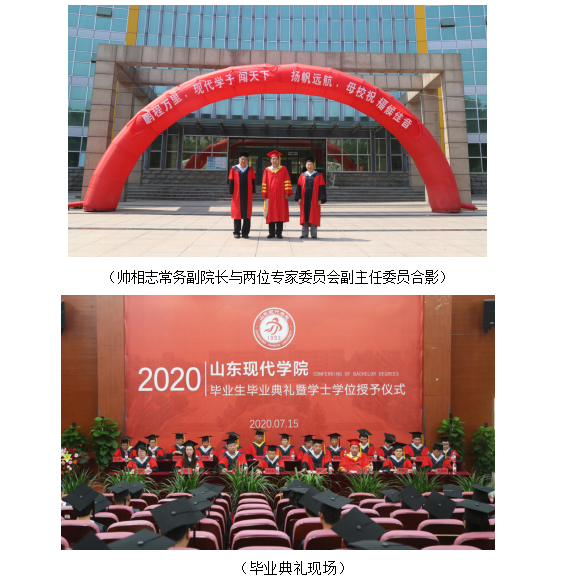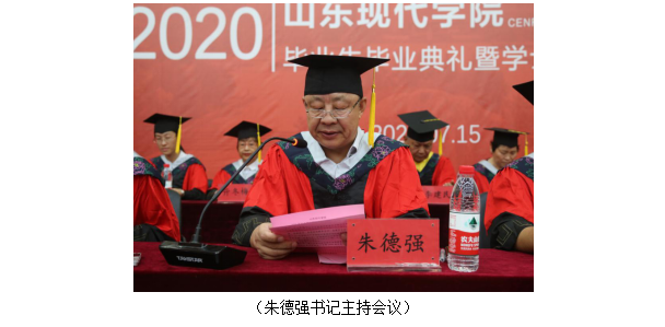 专家委员会副主任委员:山东管理学院原党委书记、国务院特贴专家冯晋祥教授,山东大学管理学院原院长、国家万人计划教学名师、山东大学特聘教授徐向艺特邀参加毕业典礼。山东现代学院党委书记朱德强主持会议,常务副院长帅相志教授,董事会执行董事、院长助理李泉慧,院长助理解银苹、董艳华,以及各二级学院、职能部门主要负责人,优秀教师代表、毕业生代表等参加现场毕业典礼,其余教师、学生和家长通过网络平台观看现场直播。