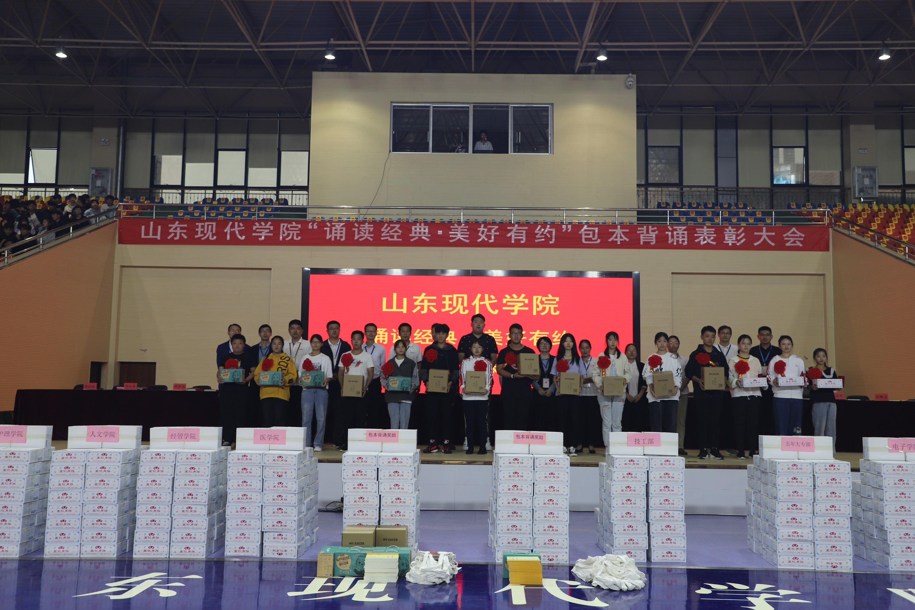为大力传承和弘扬中华优秀传统文化,形成全院学习国学经典的浓厚文化氛围,9月29日,我院在体育馆举行“诵读经典·美好有约”包本背诵表彰大会,常务副院长帅相志教授,院长助理董艳华、解银苹、宋国增,李炜恒、学生处副处长王海员、赵鹏、杨冠峰以及各二级学院负责人和有关代表出席大会,大会由解银苹院助主持。