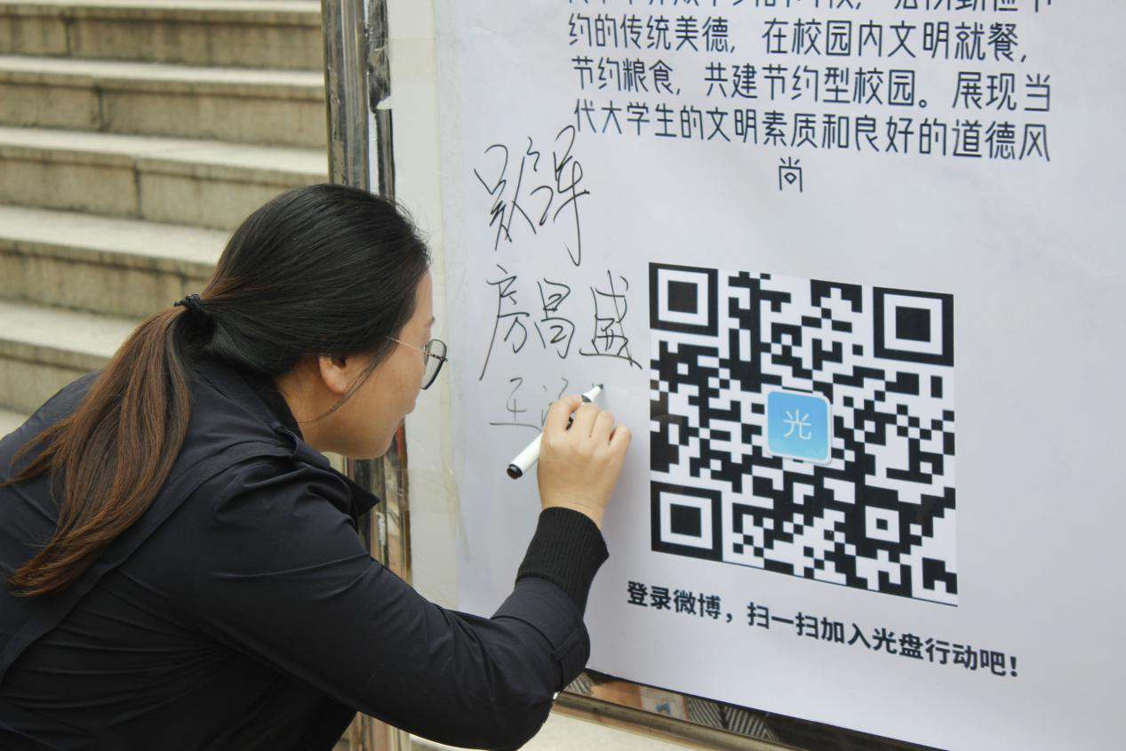 本次活动还准备了现场抽奖,同学生将自己的光盘行动晒到QQ空间或者朋友圈,并配文:光盘行动由我做起,集齐30个赞便有机会获得精美礼品。“星星之火,可以燎原”,相信通过本次活动,勤俭节约的优秀美德可以感染到每位同学。