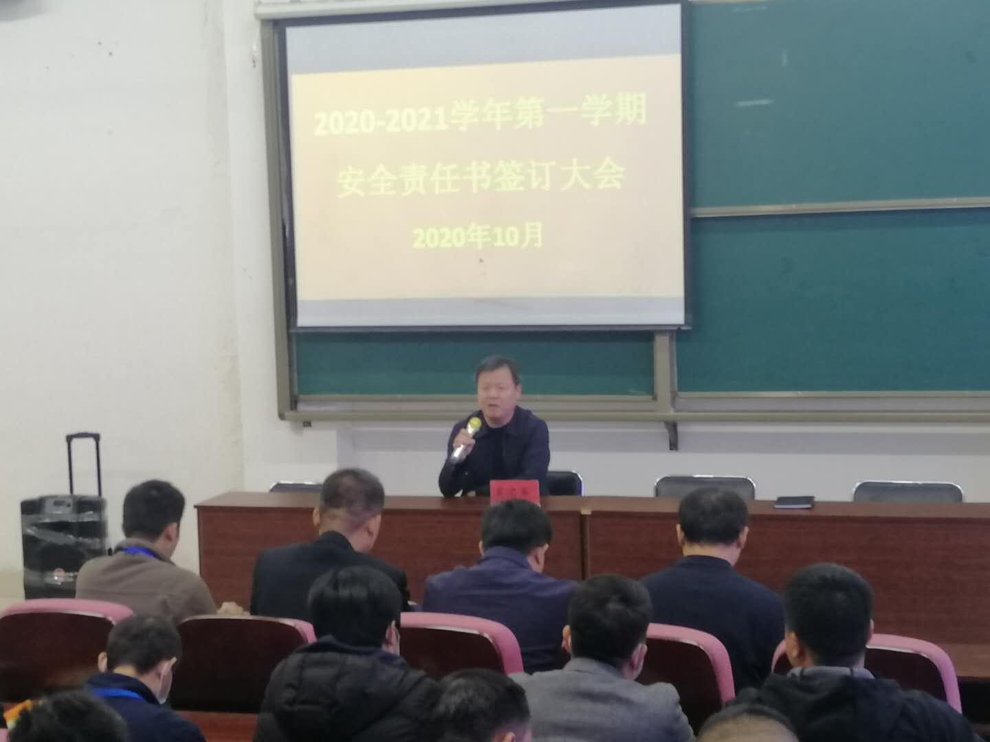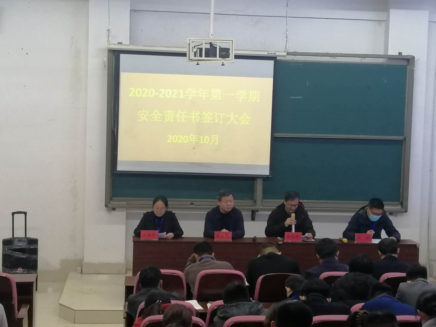 为深入贯彻落实疫情防控常态化下的防疫工作,切实做好学生管理工作,保障师生生命财产安全。10月28日,我院学生处组织在德润楼112报告厅开展新学年安全责任书签订大会,院长助理吴启军院助,学生处副处长杨冠峰、王海员、赵鹏副,以及各院系全体学管干部和辅导员参与本次大会。