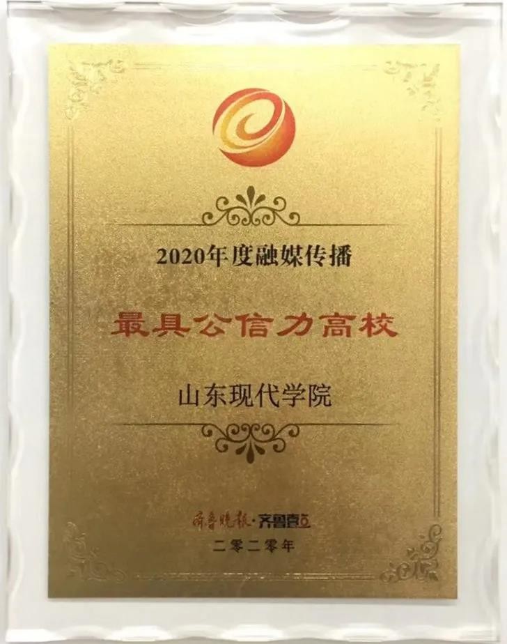 11月21日,齐鲁晚报·齐鲁壹点2020山东高校融媒传播论坛暨第二届“寻找山东最美大学校园”颁奖典礼在山东新闻大厦新闻大礼堂举行。会上,我校被授予2020年度融媒体传播最具公信力高校荣誉称号。