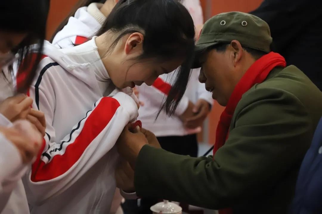 随后,与会干部为雷锋班代表授予中国雷锋爱心团胸章。