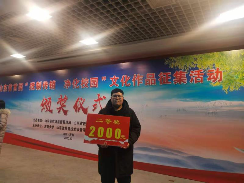 12月22日,在由山东省市场监督管理局、山东省教育厅、山东省公安厅联合举办的山东省首届“抵制传销 净化校园”作品征集活动中,我校王栋(电子信息学院),牛昱茹、宋艳、赵芮、孙雨彤(人文学院)等同学获得视频类二等奖,孙洪广、赵凡老师荣获优秀指导老师奖。
