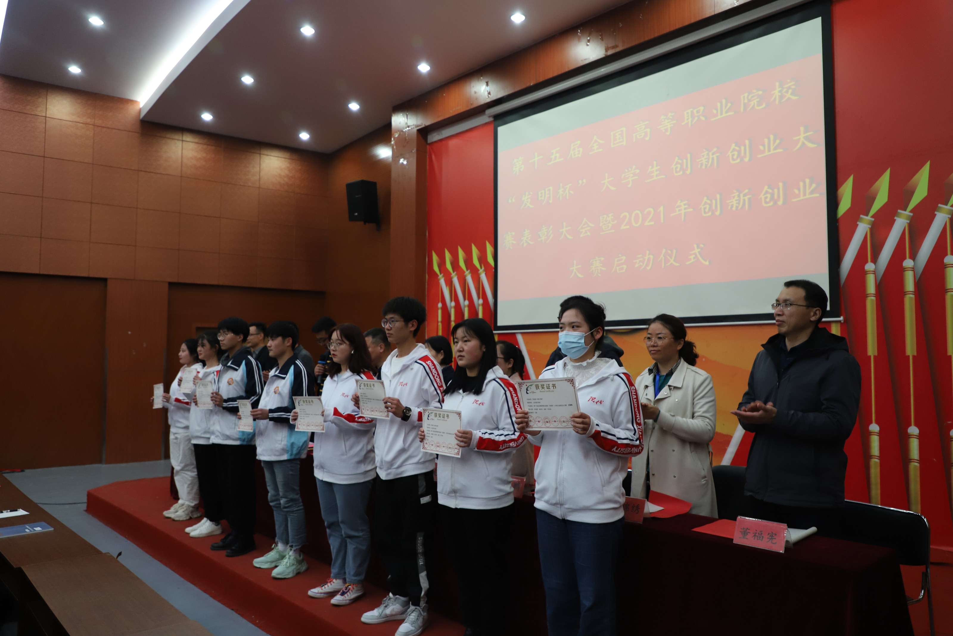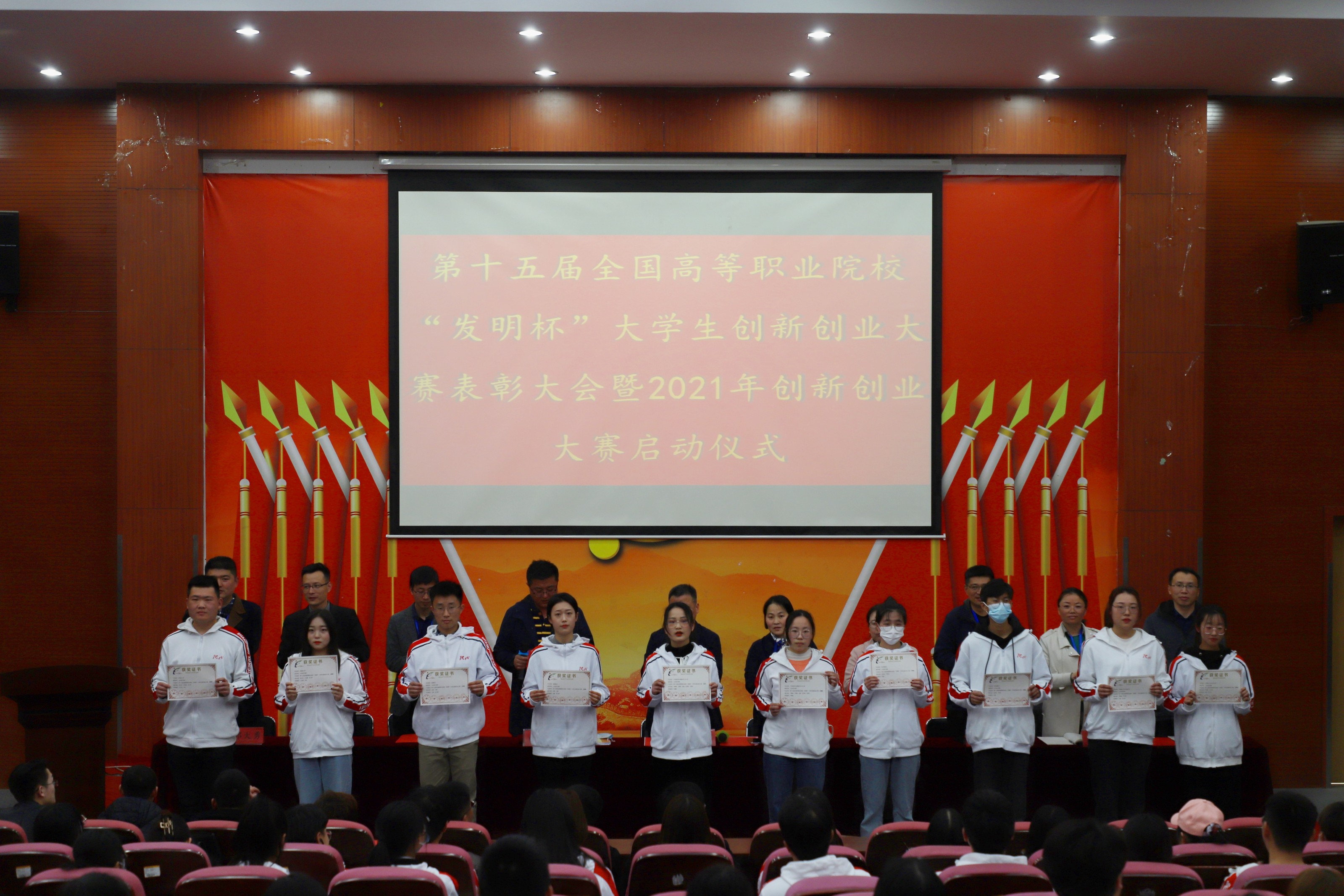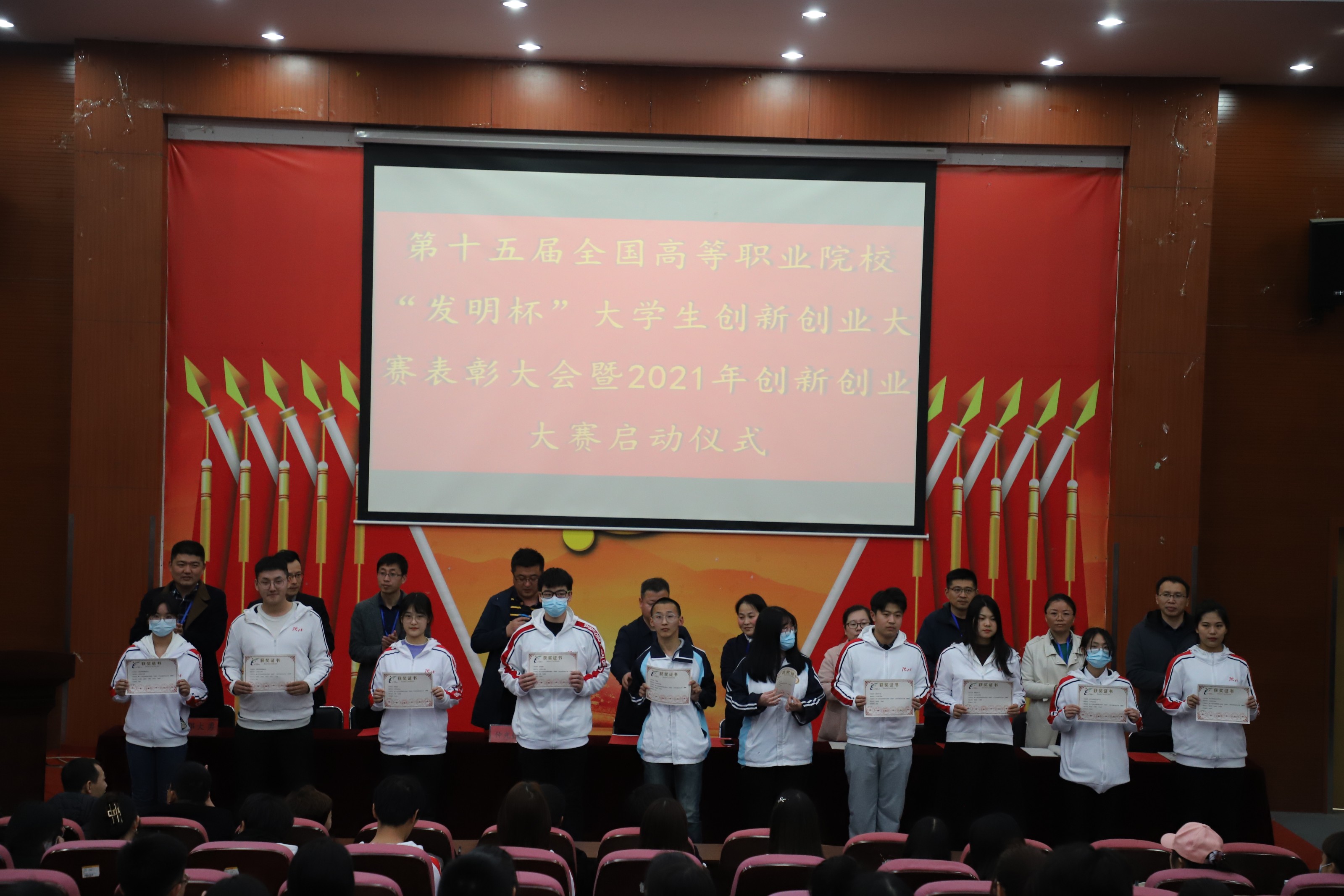 随后,招就办时敬爱主任宣读第十五届全国高职院校“发明杯”创新创业大赛获奖项目和获奖学生名单,与会领导干部为获奖学生颁奖。