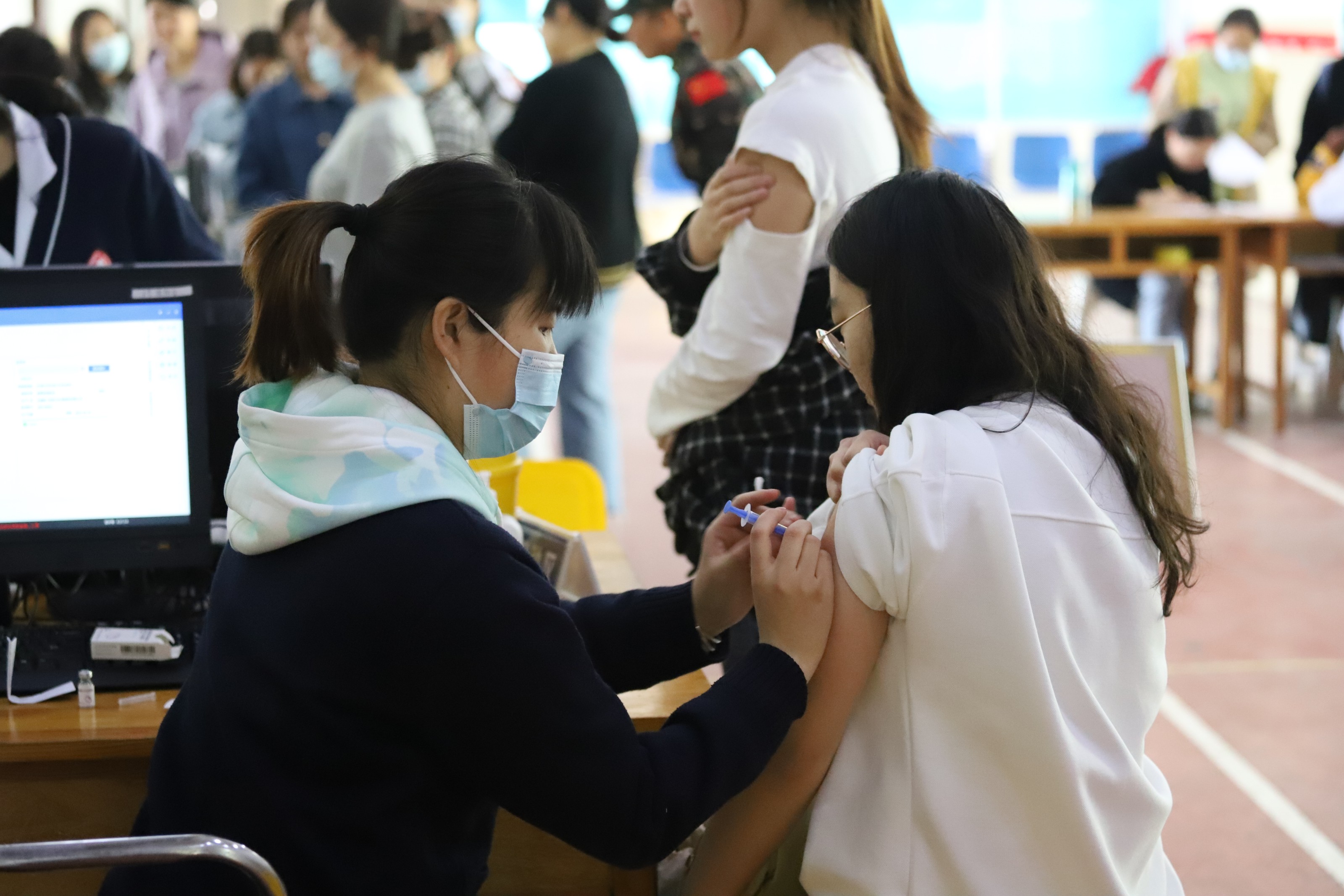 4月14日,我校采取“分时、分批”的方式,在新体育场为师生开展疫苗接种工作。