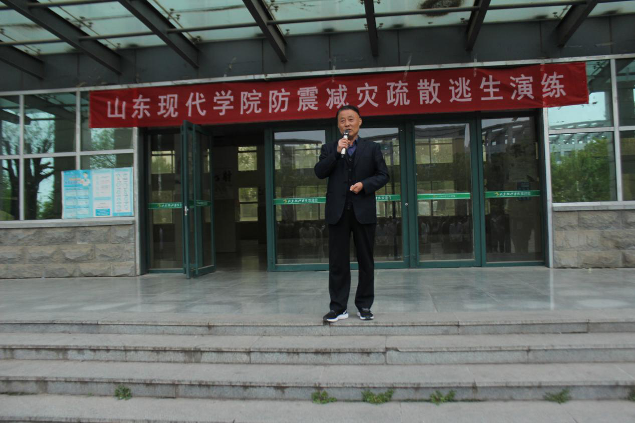 学生处杨冠峰处长为大家讲解本次演练的目的和意义,希望通过此次演练同学们能够掌握应急避震的正确方法。随后,吴启军院助宣布防震减灾疏散演练活动正式开始。