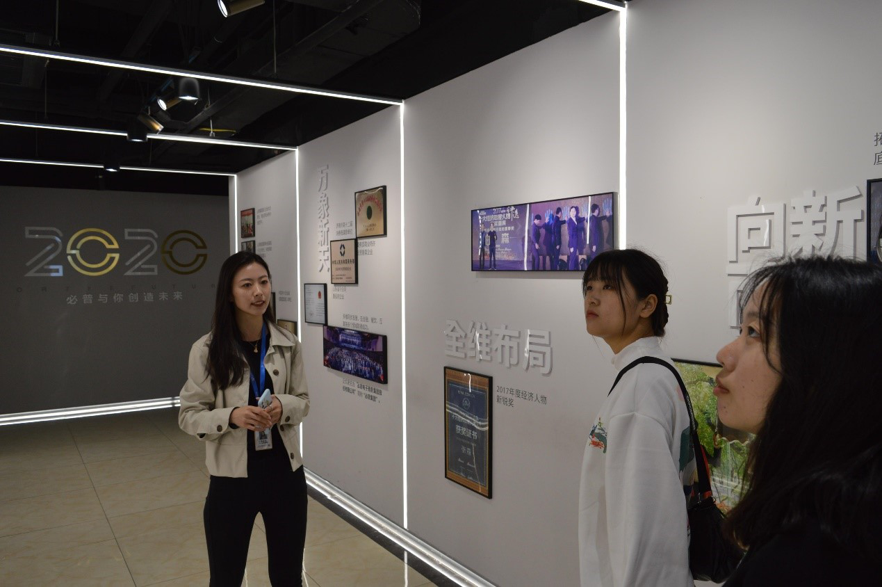 在企业讲解人员的带领下,我校老师和同学们首先参观了必普集团,对集团目前主要业务进行简单了解。同学们边走边听、边走边问,开阔了视野,增长了见识,对今后的职业发展也有了清晰的认知和定位。
