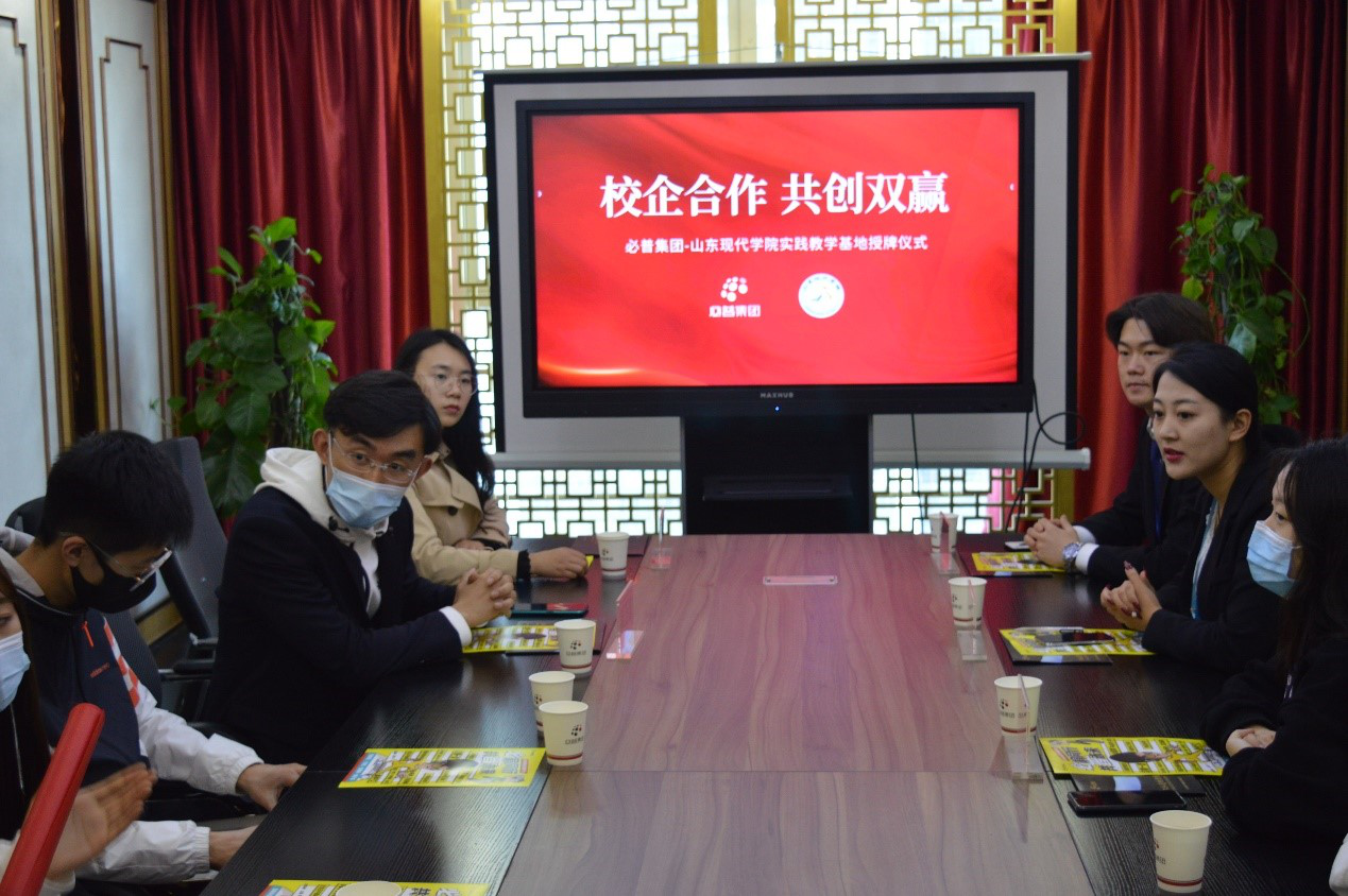 在授牌仪式会议上,韩亚建老师代表学校表达了对我校在必普集团实习学生的关怀,并希望同学们借助校企合作平台,切身体验岗位工作,虚心学习,找到理论知识和实践结合的突破口,为自身的成长赋能。