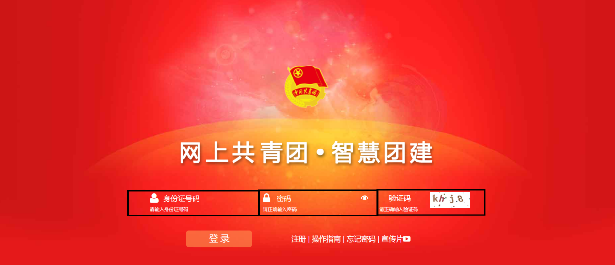 3.电脑打开“智慧团建”系统网站,输入账号、密码、验证码后,再点击“登录”。