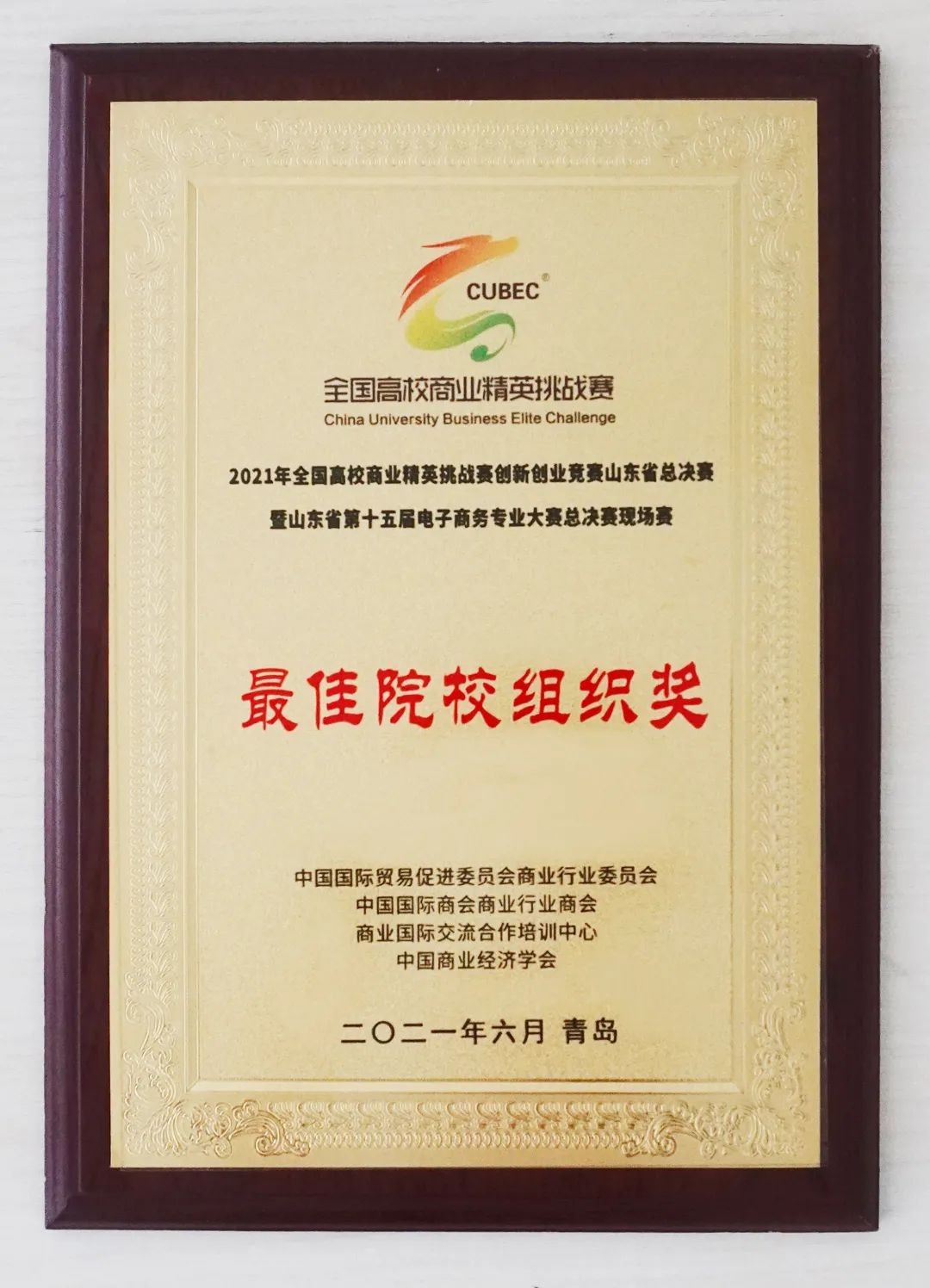 6月19日,2021年全国高校商业精英挑战赛创新创业山东省总决赛暨山东省第十五届电子商务专业大赛总决赛在青岛黄海学院开赛。我院经济管理学院学生王庆、杨晓帅、葛朝威、孟祥成、伏高阳组成的代表队荣获高职组一等奖;尉健桦、邹雪梅、康德松、孙家祺荣获本科组二等奖;刘恩慧、李琰、肖子倩、陈嘉玲、王蕊荣获本科组二等奖;陈密、李攀攀、王贝贝、程佳熙、孙龙飞荣获高职组二等奖;李祎航、李秀芝、高文静、贾亚茹、倪荣月、刘焕焕荣获本科组二等奖;同时,我校荣获“最佳院校组织奖”。