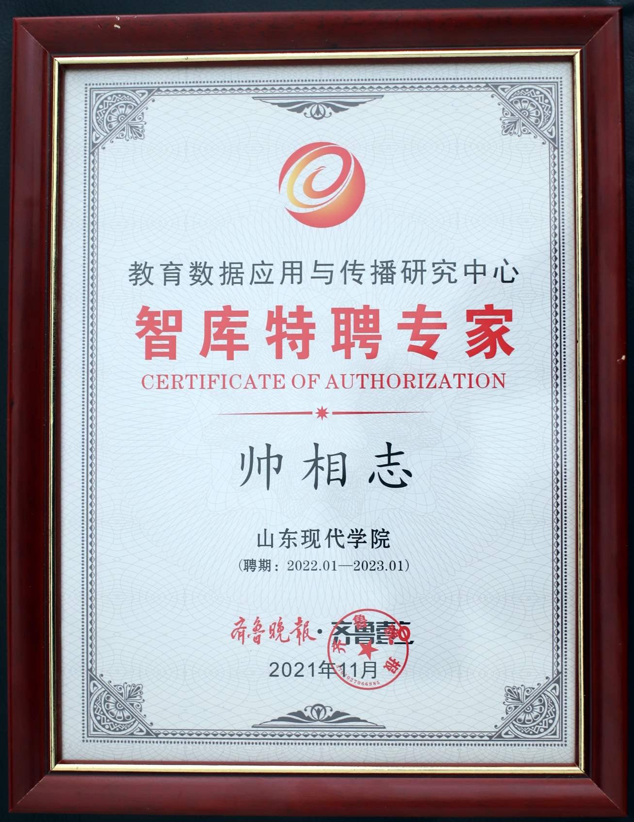 11月18日,齐鲁晚报·齐鲁壹点山东高考交流会暨教育数据应用与传播研究中心年会在山东新闻大厦开幕。我校常务副院长帅相志教授出席会议。会上,向获得“齐鲁晚报·齐鲁壹点教育智库专家”颁发了聘书,我校常务副院长帅相志教授获聘“齐鲁晚报·齐鲁壹点教育智库特聘专家”。