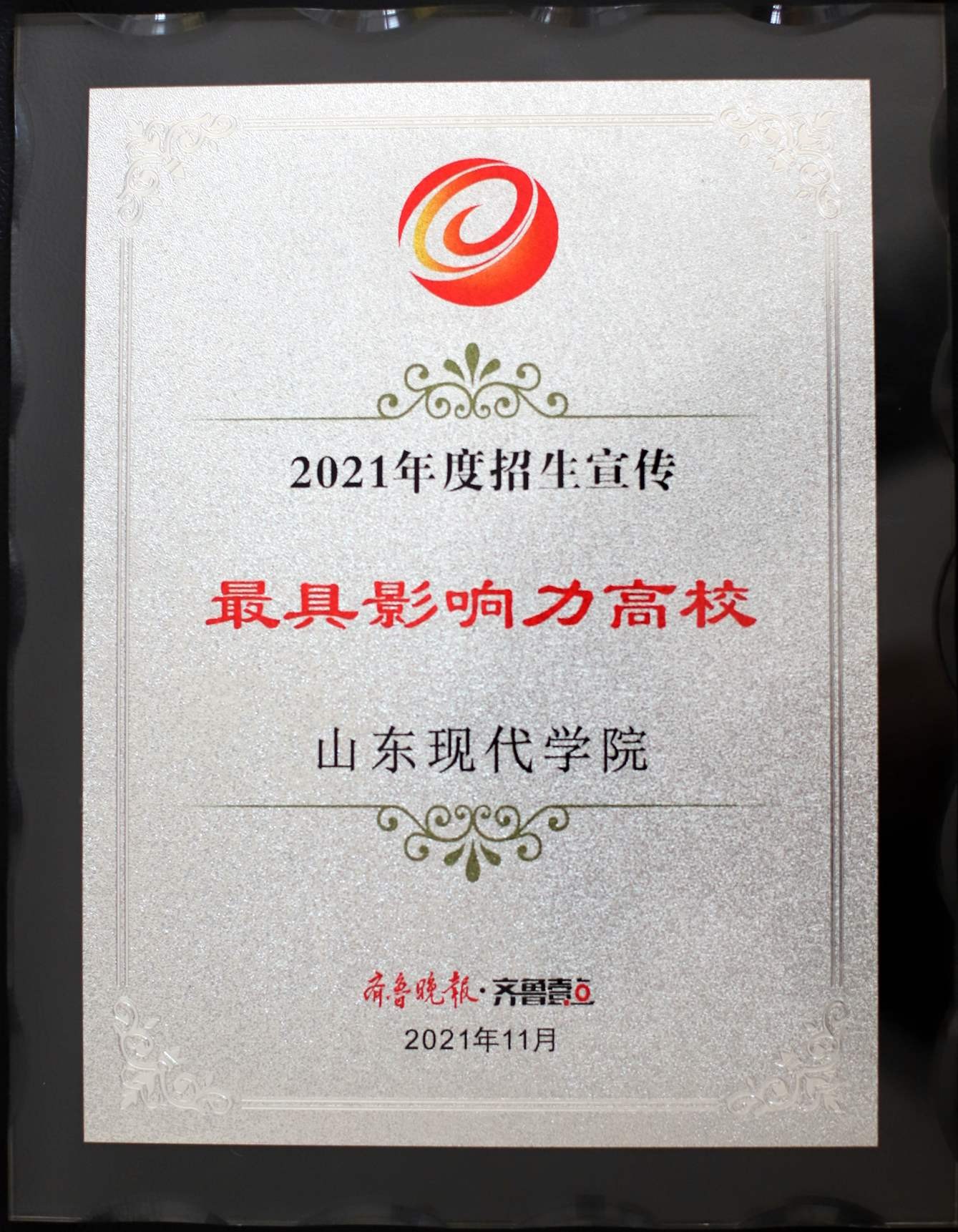 齐鲁晚报·齐鲁壹点对各高校的用户关注度、满意度调查等进行了全面分析,制作出2021年度山东高校招生融媒传播影响力榜单,评选出2021年度招生宣传系列奖项。我校荣获2021年度招生宣传最具影响力高校荣誉称号。