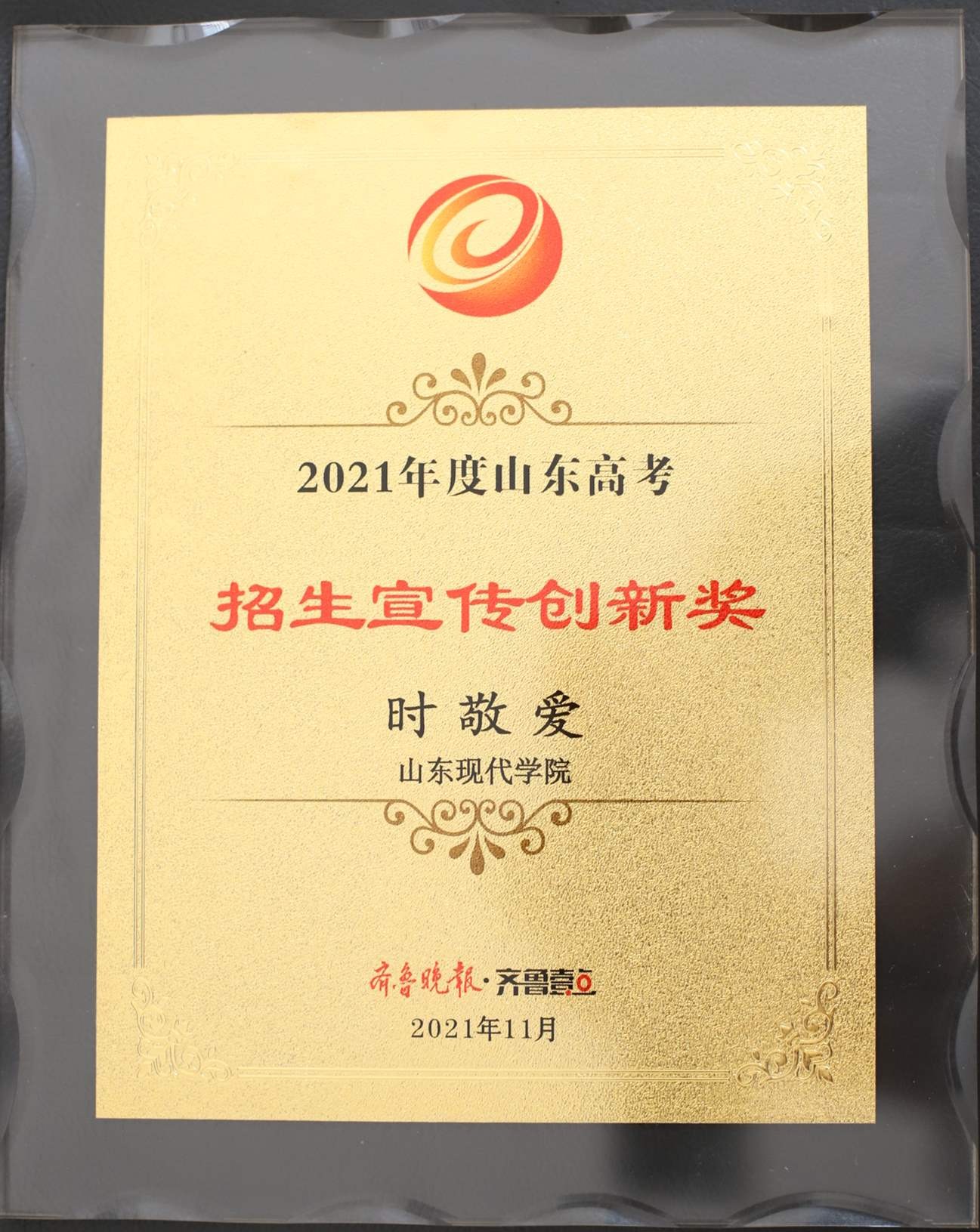 招就办时敬爱处长荣获2021年度山东高考招生宣传创新奖。