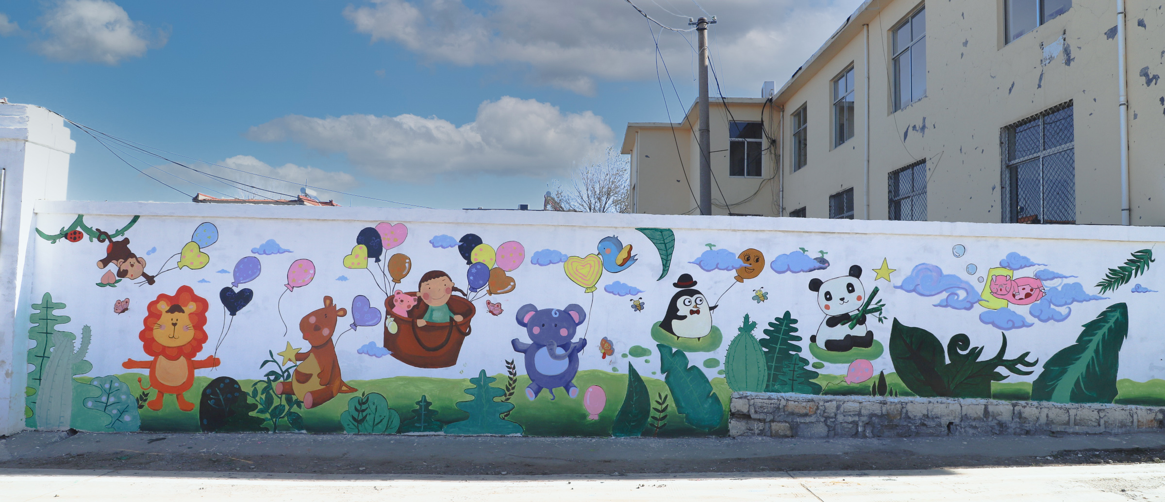 在学校的大力支持下,同学们全副武装,在寒风中用灵巧的画笔装点着昔日单调陈旧的墙体。经过近一周的努力,一幅幅构思巧妙、通俗易懂的墙绘作品精彩亮相,吸引了众多村民纷纷驻足观赏,学生们看到这焕然一新的墙绘,感到由衷的欣慰。