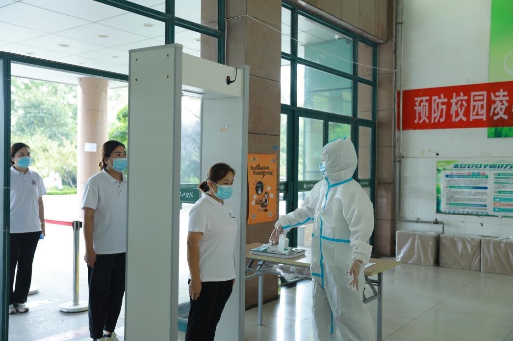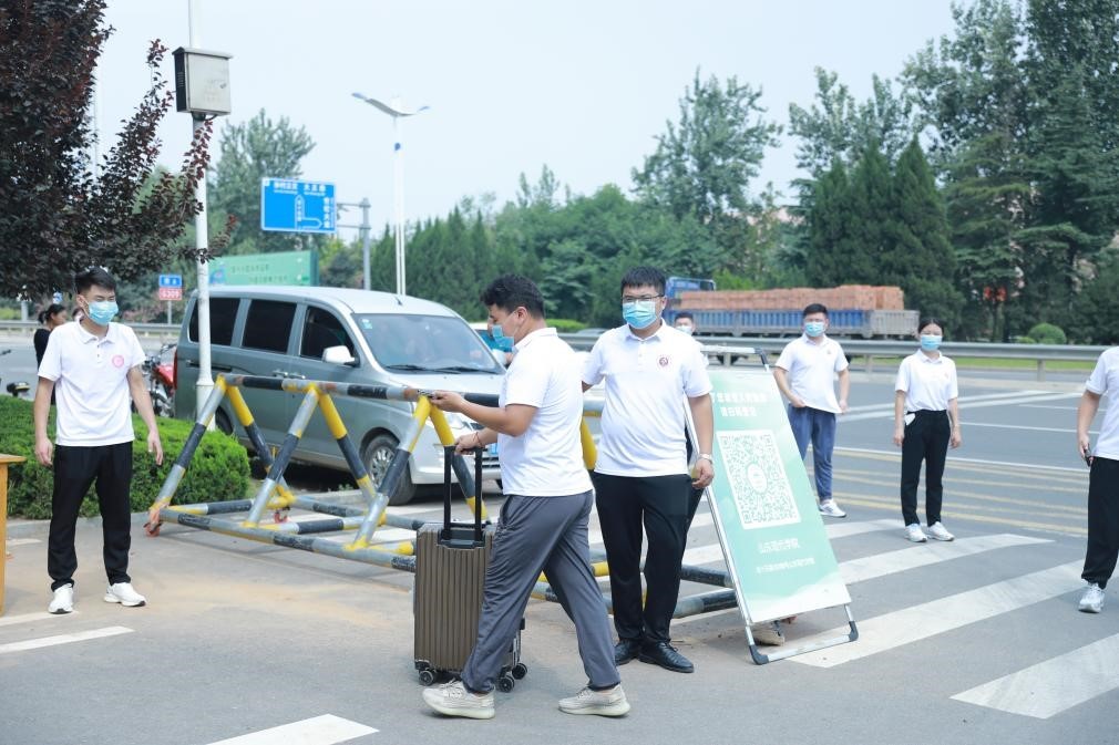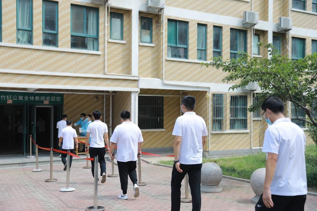 (省内、省外学生分通道间隔进入检测区)