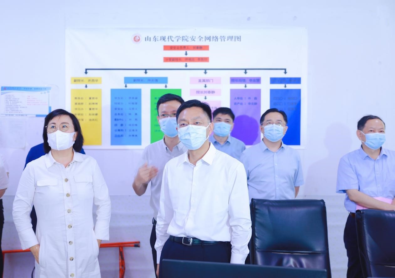 8月23日上午,中共济南市委常委、宣传部部长戴龙成,济南市教育局局长王纮,高新区党工委副书记、管委会常务副主任任广锋等领导莅临我校检查常态化疫情防控及开学准备工作。学院董事长兼院长刘春静教授、党委书记赵友春、常务院长帅相志教授、副院长李胜印等负责同志陪同检查调研。