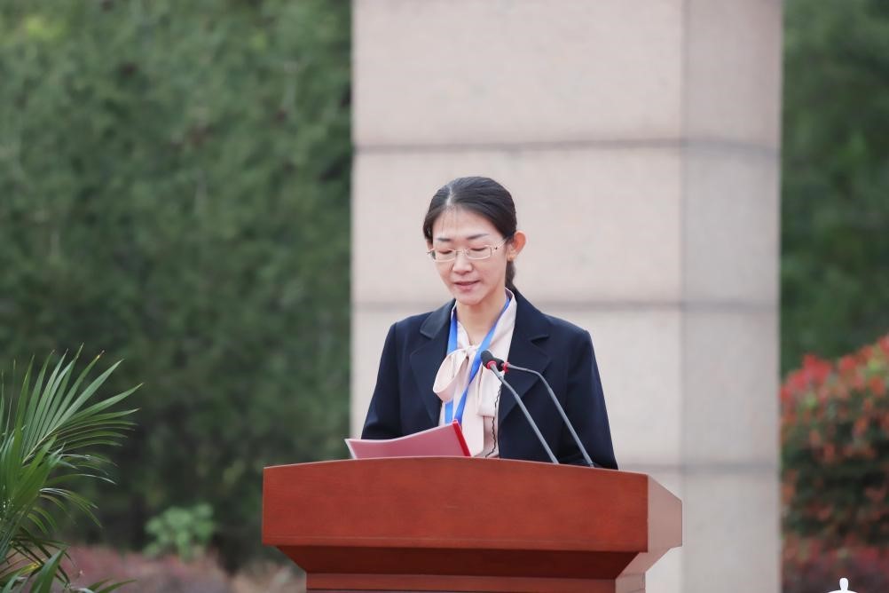 教师代表王海燕代表获奖的先进个人,表示感谢学校领导的关心,在今后的教育教学和科研工作中更好地发挥骨干带头作用,为学校的高质量发展贡献力量。