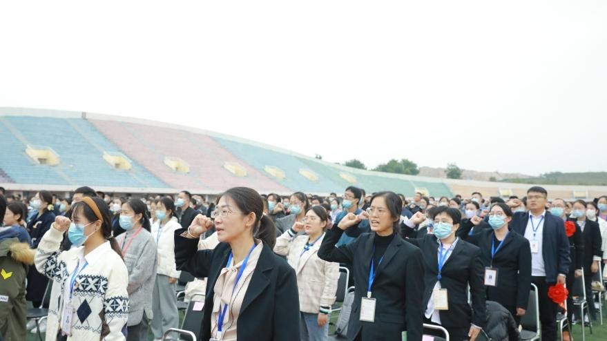 会议开始后,学校领导与全体教职工庄严宣誓。