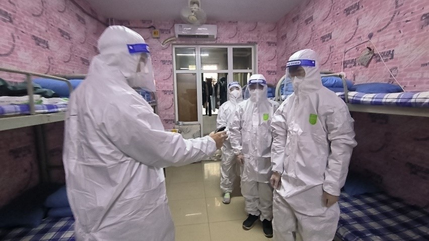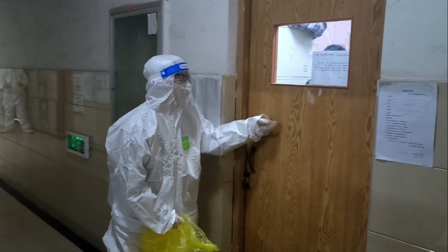 【志愿者向各个宿舍说明情况,安抚同学情绪】
